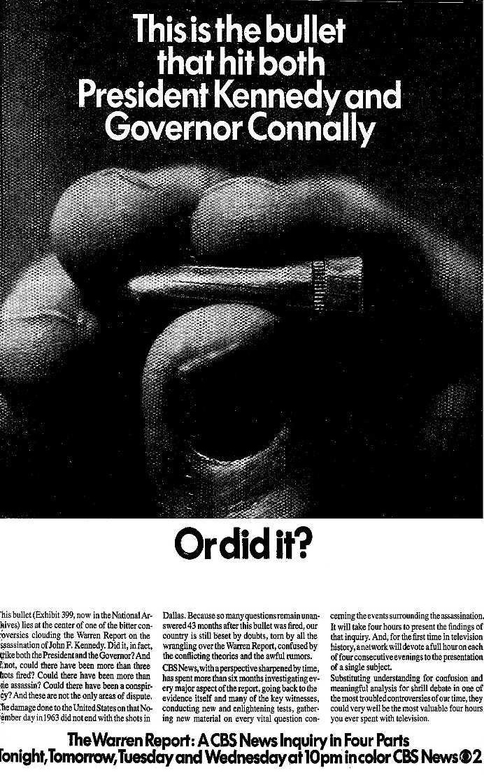 CBS decided they were going to try and influence the outcome of the HSCA in advance. So they now prepared still another special about the JFK case. (And since the congressional resolution forming the HSCA sanctioned an inquiry into the Martin Luther King case also, CBS was going to a do a special on that assassination too.)