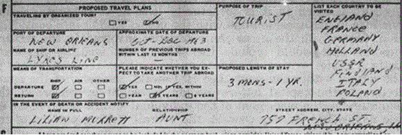 His June 1963 passport application was approved and his passport issued. On this June 1963 application Oswald stated he would be leaving between Oct & Dec 1963 from NOLA on a ship (he took the SS Marion Lykes of the Lykes Brothers Steamship line from NOLA to Europe on his "trip" to the USSR in 1959) and he'd be gone 3 months to a year. Lykes Questionaire CE1948. The Lykes Brothers line is the same one taken by George DeMorenschildt on his trip back from Haiti thru NOLA to Dallas. (WC testimony of Mr. DeM GDeM testimony).
