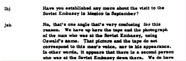 All the FBI had to do was trace Oswald from New Orleans the morning of Sept 25th thru Houston to Laredo and across the border to Nuevo Laredo Mexico, thru Monterrey and then to Mexico City. A few days in Mexico; Friday to Wednesday; to get done on that weekend what is hard enough during regular working hours with appointments.