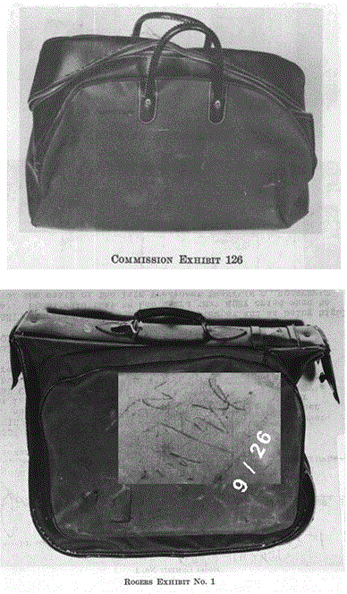 Yet we must remember that this bag was NOT identified among the ones Oswald had when he left 4905 Magazine. The WCR states on page 731 that Oswald took BOTH CE126, a small, blue zippered bag (the one Rogers identified he was carrying in both hands) and a "large, olive-colored bag" footnote #1121 which is, of course, Rogers Exhibit #1, the bag provided by Ruth and DENIED by everyone asked as a bag Oswald took to Mexico.