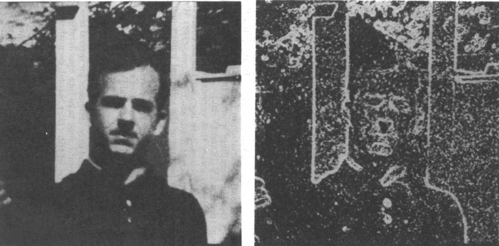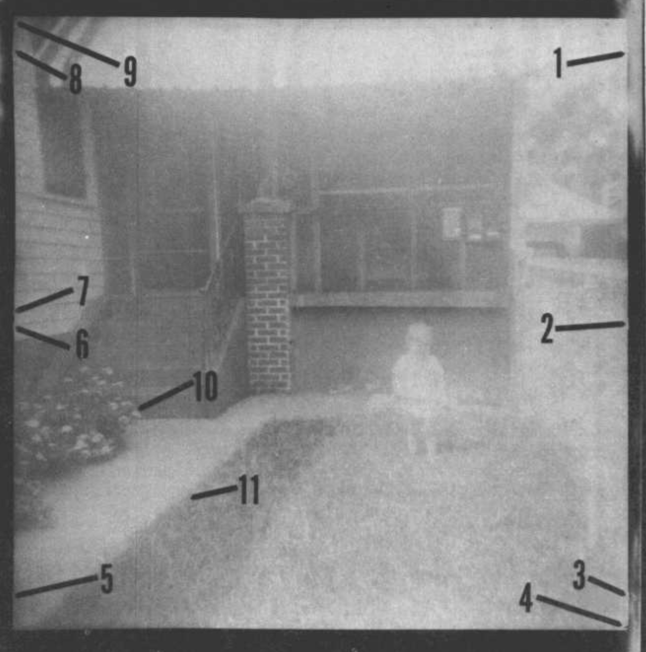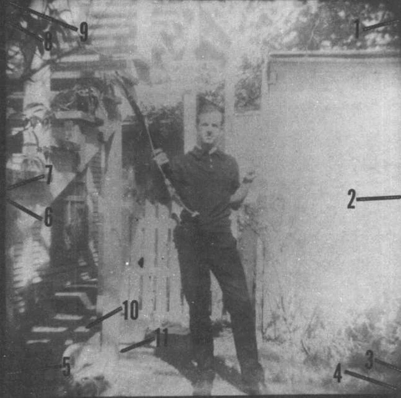 The FBI’s Shaneyfelt used a comparative negative technique to determine that the Imperial Reflex camera in evidence had taken the backyard photographs. Snapping a new picture using this camera allowed for a comparison of this new negative with the backyard photo negative 133-B. Unique marks and scratches created by the camera on the edge of the image could be identified, and then checked against other negatives to find similarities which could link them to this same camera. Shaneyfelt also identified a photo taken near General Edwin Walker’s home, found among Oswald’s possessions, with this camera.