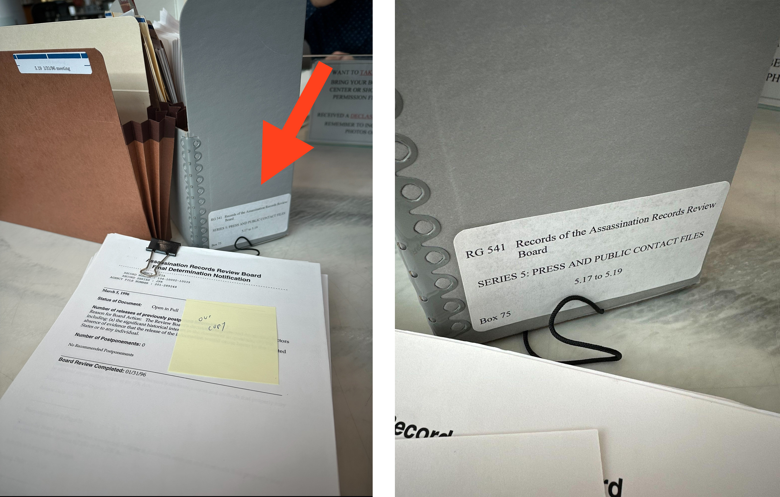 Fortunately, there were three boxes left to search on the bottom shelf of the cart and with only two boxes remaining, I quietly, but triumphantly declared “JACKPOT!!” to Paul and Jeff. A box full of ARRB Final Determinations opened like the Ark of the Covenant in Raiders of the Lost Ark.