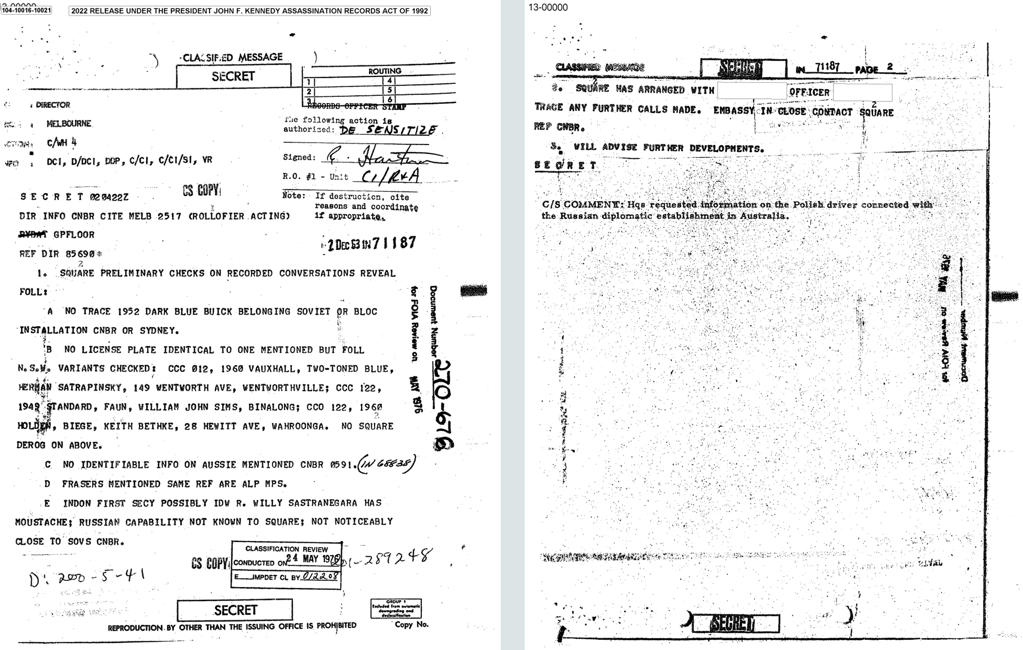 An unambiguous example of such unlawful withholding of the release of an assassination record is demonstrated by assassination record RIF# 104-10016-10021. This CIA SECRET record, dated December 1963 from Melbourne and addressed to the Director of Central Intelligence, was ordered to be fully released by January 2006 in the ARRB Final Determination dated April 18, 1996. Copies of the ARRB Final Determination and the assassination record are reproduced below, but can be seen in finer detail by clicking the hyperlinks above. This assassination record was only just released in March 2025, a delay of almost 19 years.