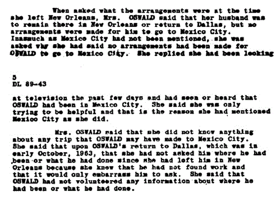 One has to wonder what occurred to change Marina's account of Mexico between November 28 & 29, 1963 and Feb 3, 1964 when she began giving the "adjusted" account of her knowledge about her husband's Mexico Trip...