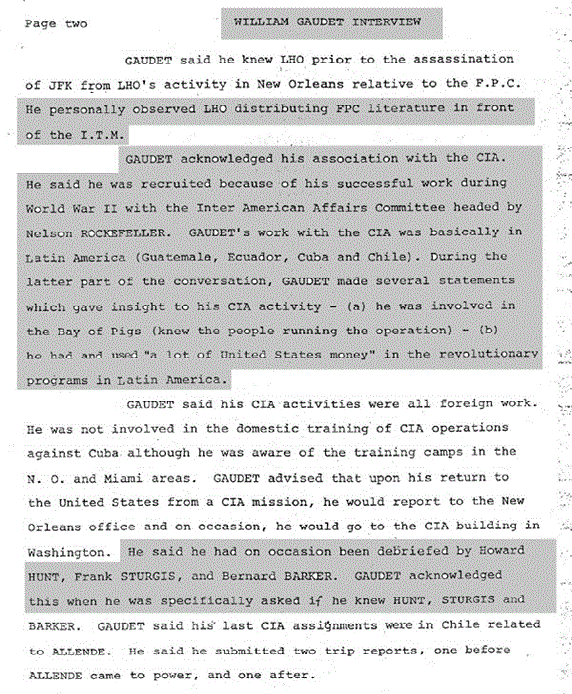 National Archives, HSCA 180-10070-10274, Numbered Files 004826; HSCA interview of William Gaudet