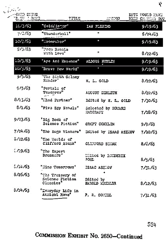 On September 19th, two days later, Oswald is at one of the New Orleans public libraries and checks out four books. This in itself is not surprising as most said he was an avid reader (not bad for a 10th grade dropout: teaches himself Russian, speaks eloquently on Marxism, his own philosophies, his travels and his photographic abilities. School records reflect a 102 to 118 IQ.) What surprises is the fact these books are returned in New Orleans on the day Oswald is supposed to have arrived in Dallas; October 3, 1963. (We will return to Oct 2 and beyond in Part 3). One has to wonder who this Lone Nut Oswald was so close to that they would return four library books. Where were these books? If he traveled with the books he'd need to stop in New Orleans first, which was something Marina was asked about, but then he could never have been in Dallas at the time he was. Mrs. Jesse Garner, the apartment manager found a completely empty 4905 Magazine on the 25th when she came to collect some rent that was due. Oswald had taken all his possessions with him, yet these library books were returned in New Orleans on the 3rd of October.
