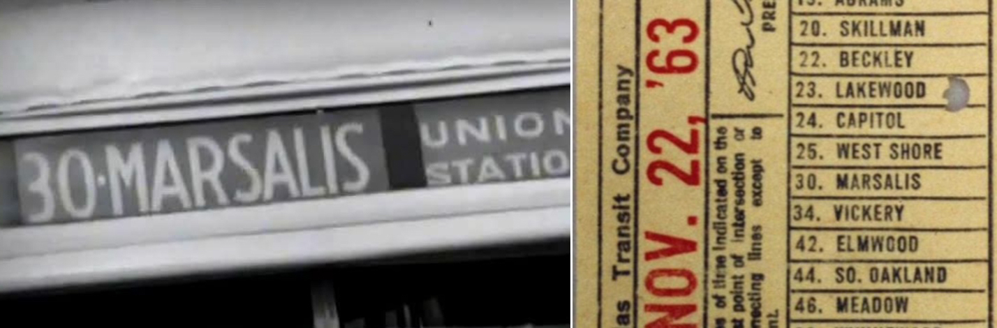 “When Oswald was apprehended, a bus transfer marked for the Lakewood-Marsalis route was found in his shirt pocket”