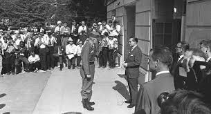 To give an example of this, on the evening of Saturday June 8th, Wallace had sent the White House a telegram telling the president that “out of an abundance of caution” he was calling up about 500 state guardsmen. Kennedy replied that he was “gratified by the dedication to law and order expressed in your telegram” informing him of the potential use of the National Guard at Tuscaloosa. But, the president continued, the only foreseeable threat of violence came from Wallace’s “plan to bar physically the admission of Negro students in defiance of the order of the Alabama Federal District Court, and in violation of accepted standards of public conduct.” (Cohen, p. 74) On Tuesday June 11th, Wallace flew from Montgomery to Tuscaloosa. He had a motorcycle escort to the Hotel Stafford where he constructed his headquarters. Wallace was going to make real his promise to stand in the schoolhouse door. The problem for the White House was that the courts had ruled on May 21st that the students had to be enrolled for the summer session, which began on June 11th. (ibid, p. 236)
